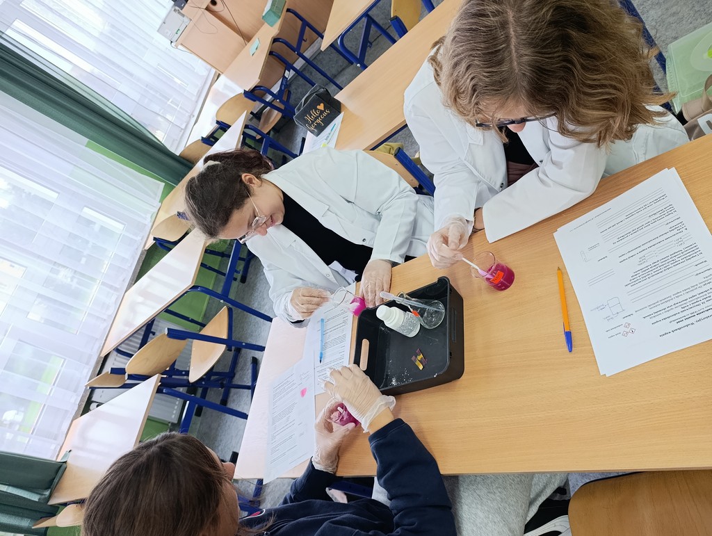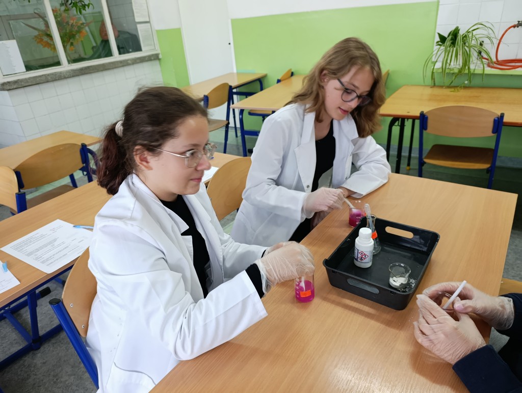 Uczniowie biorący udział w projekcie „Edukacja włączająca w gorlickich szkołach podstawowych” podczas wrześniowych zajęć matematyczno –przyrodniczych dla uczniów zdolnych pogłębili i utrwalili wiedzę na temat wodorotlenków. Uczennice miały okazję przeprowadzić osobiście doświadczenia chemiczne związane badaniem odczynu roztworu wodorotlenków, otrzymywania wodorotlenków dobrze rozpuszczalnych oraz nierozpuszczalnych w wodzi. Dziewczyny z dużym zaangażowaniem uczestniczyły w tych zajęciach, chętnie wykonując poszczególne doświadczenia opisane w kartach pracy – dziennikach laboratoryjnych. Dziewczyny rysowały schematy oświadczeń, opisywały obserwacje oraz wyciągały wnioski z przeprowadzonych ćwiczeń . Zajęcia były doskonałym sposobem przyswojenia wiedzy poprzez eksperymenty.