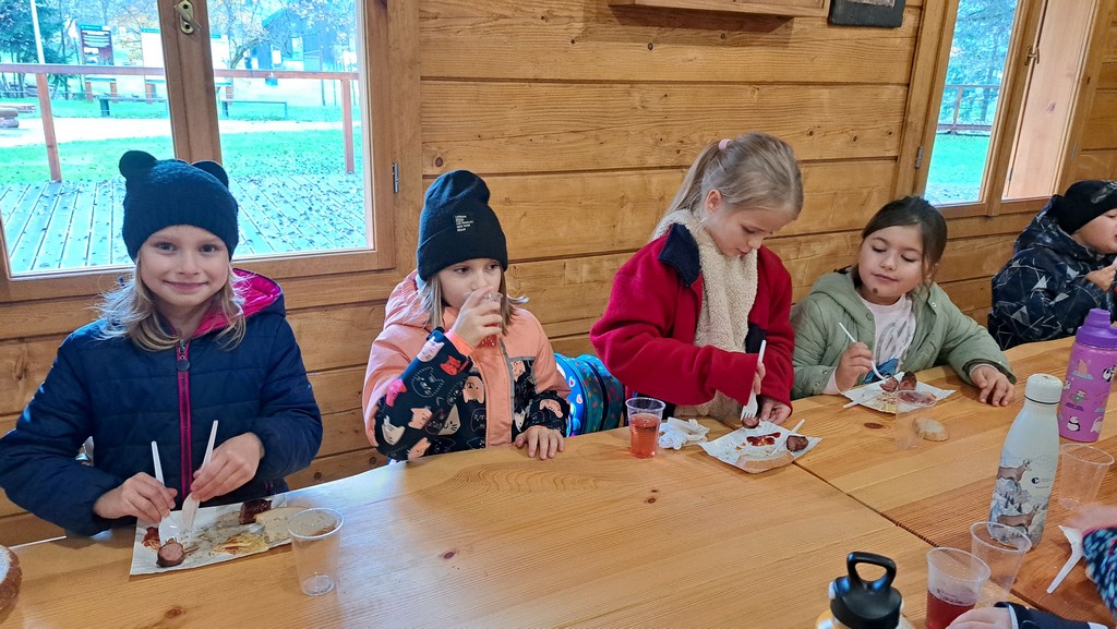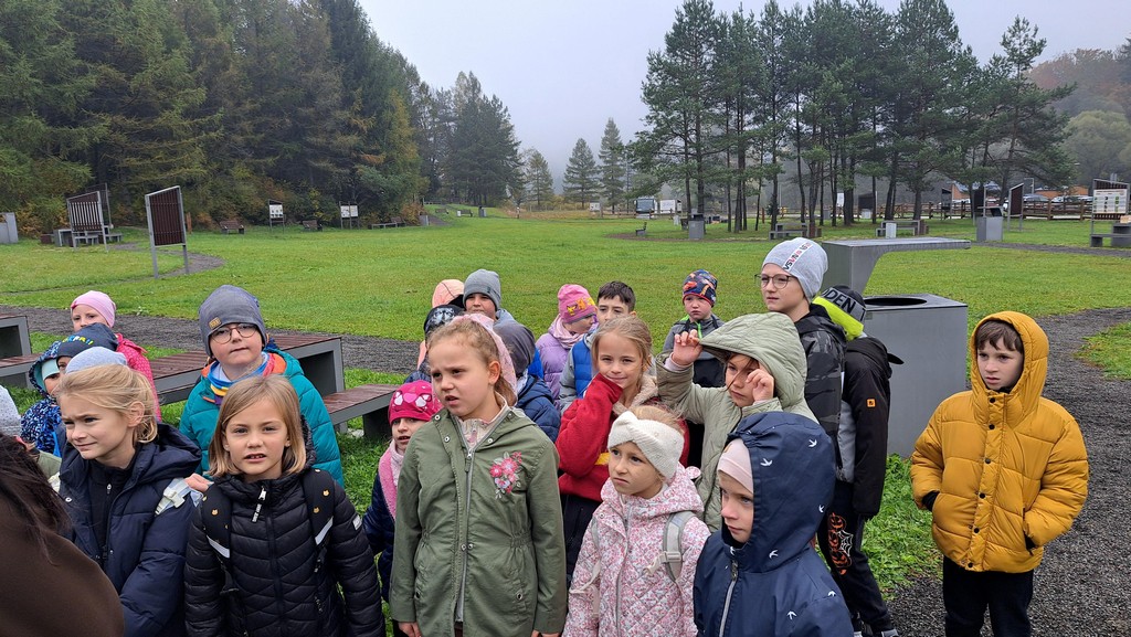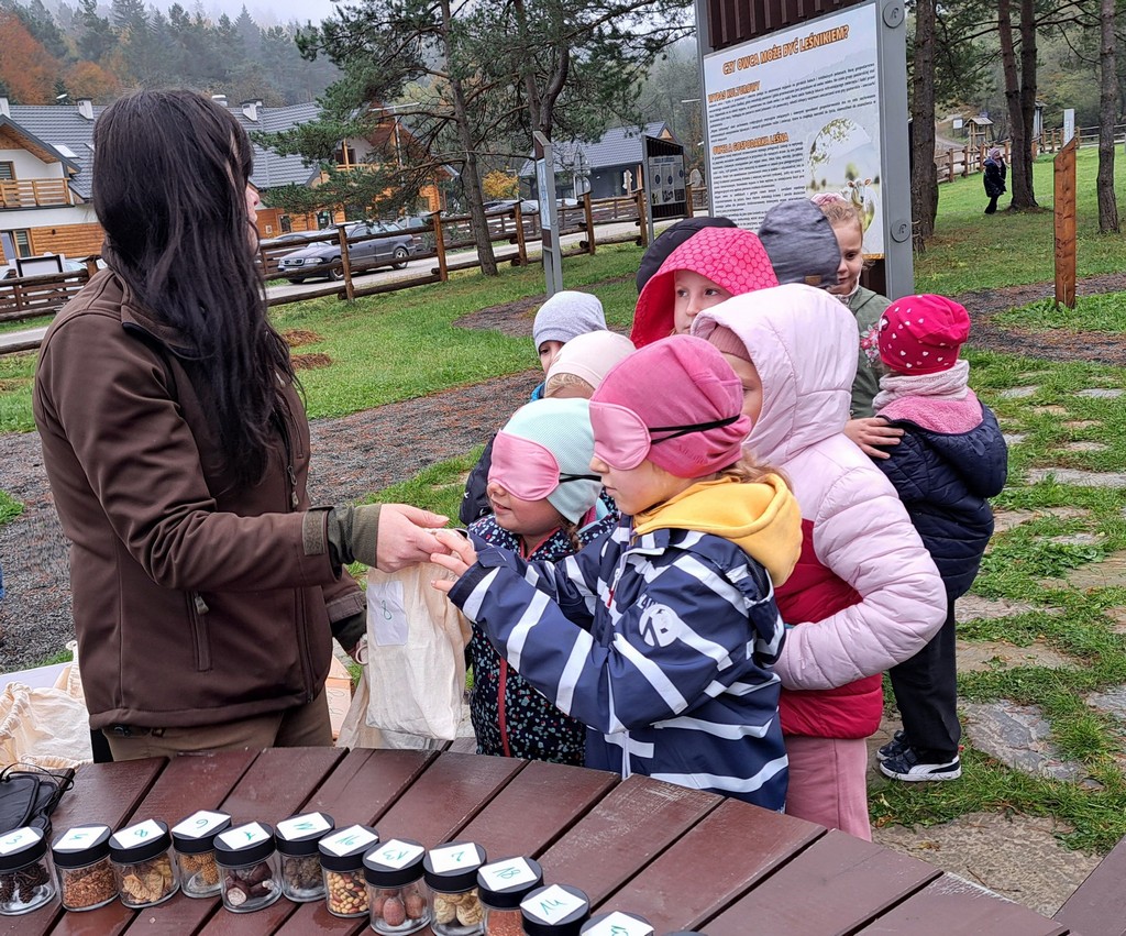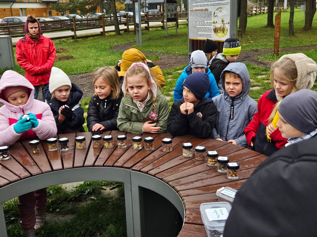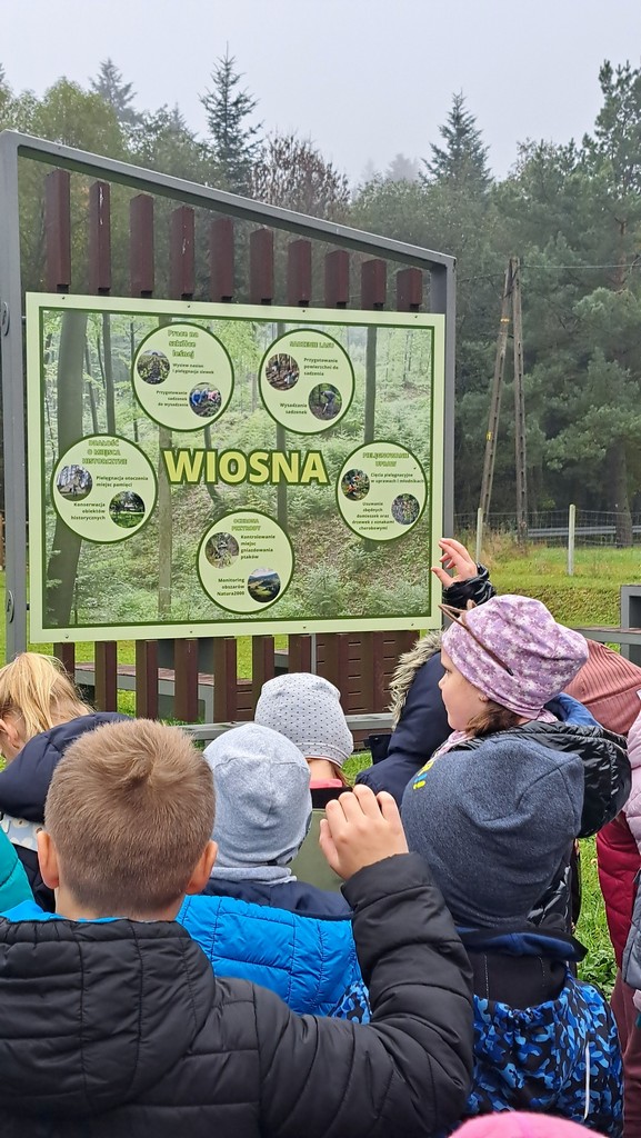 Na miejscu uczniów powitała Pani Izabela Maciąg z Nadleśnictwa Gorlice , która zaprosiła je na wspólny spacer po lesie. Podczas wędrówki dzieci poszukiwały jesiennych darów lasu i oglądały drzewa w pięknych kolorowych barwach. Dowiedziały się także jakich mieszkańców lasu można spotkać w rejonie Beskidu Niskiego i na co trzeba szczególnie zwracać uwagę podczas spacerów po lesie, m.in. jakich nie zbierać grzybów. Ponadto Pani leśnik pokazała dzieciom norę bobrów.