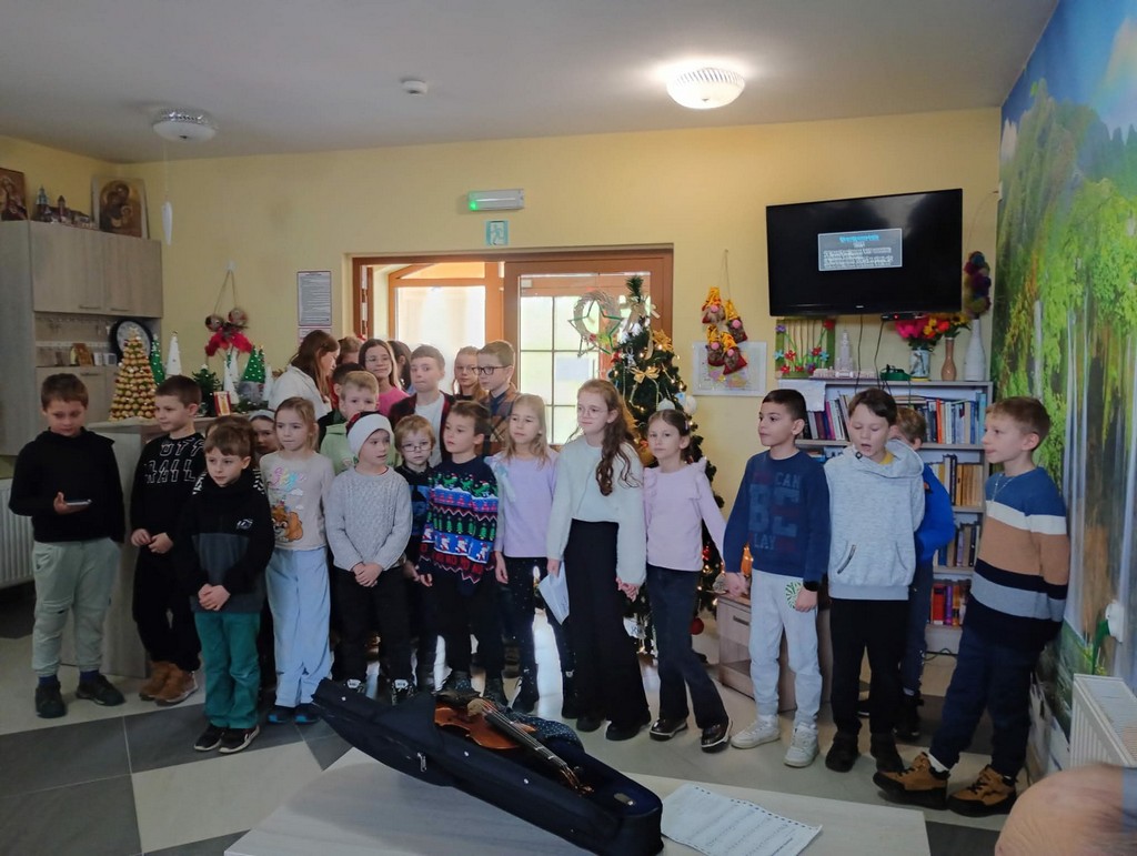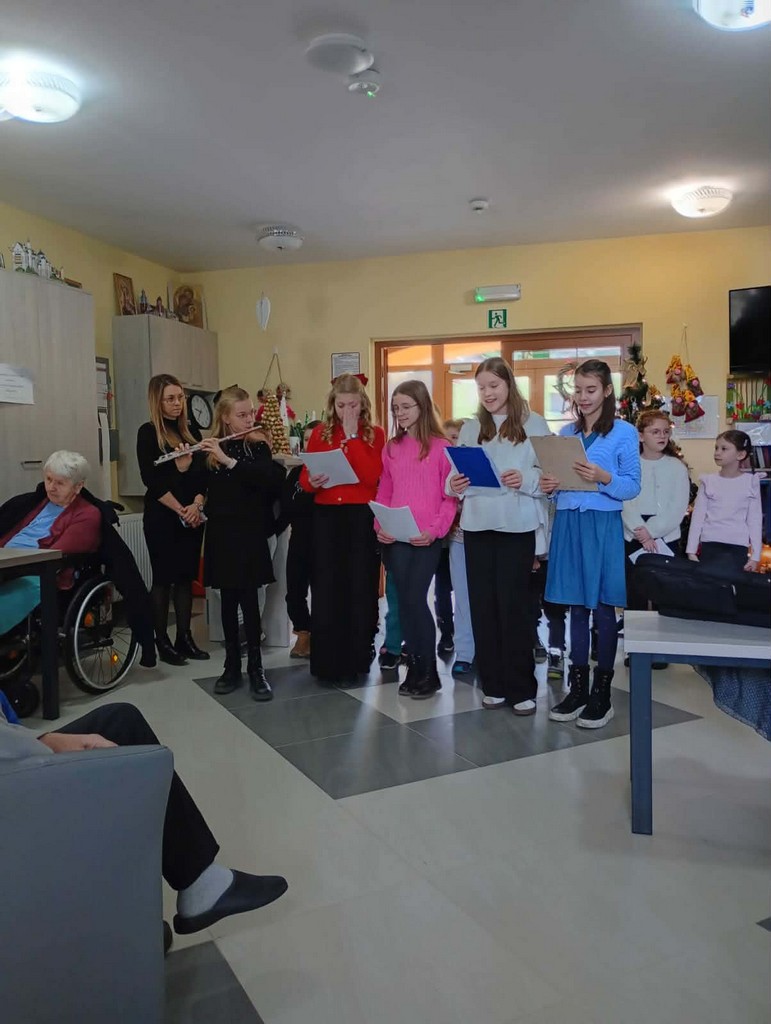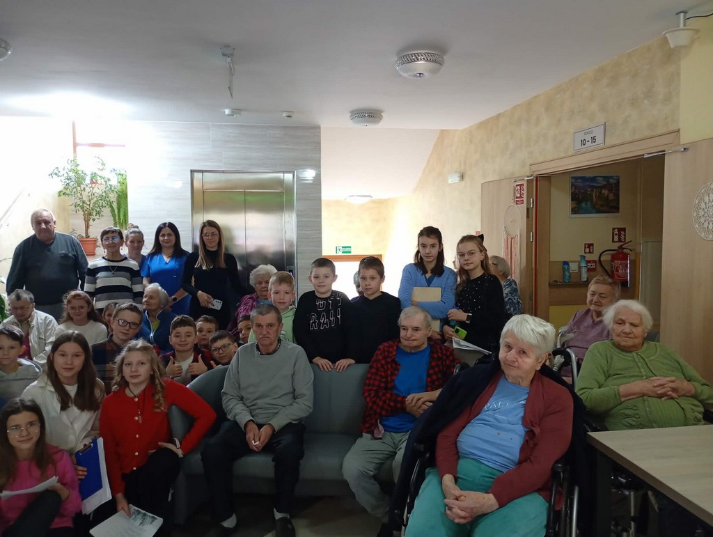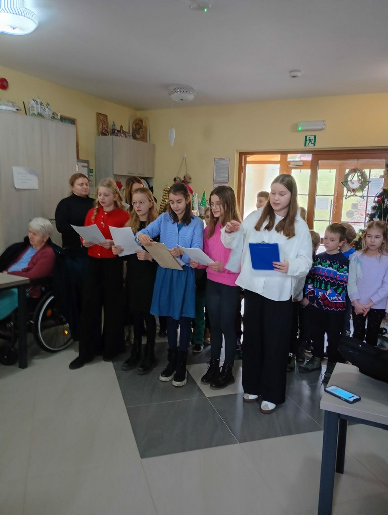 Mamy przyjemność przedstawić Wam małą grupę wolontariacką, Małe serduszka. Klasy 5 b oraz 2a z opiekunami Joanną Moroń i Justyną Burkot przygotowały dary pełne miłości dla seniorów przebywających w Domu Pomocy Społecznej w Wapiennym. Uczniowie zebrali produkty spożywcze oraz kosmetyczne, które umilą pobyt poznanym babciom i dziadkom oraz przygotowali mini koncert kolęd. Były łzy wzruszenia oraz radość z poznania nowych osób. Bardzo się cieszymy że wizyty w Wapiennym na stałe zagościły w kalendarzu tych klas.