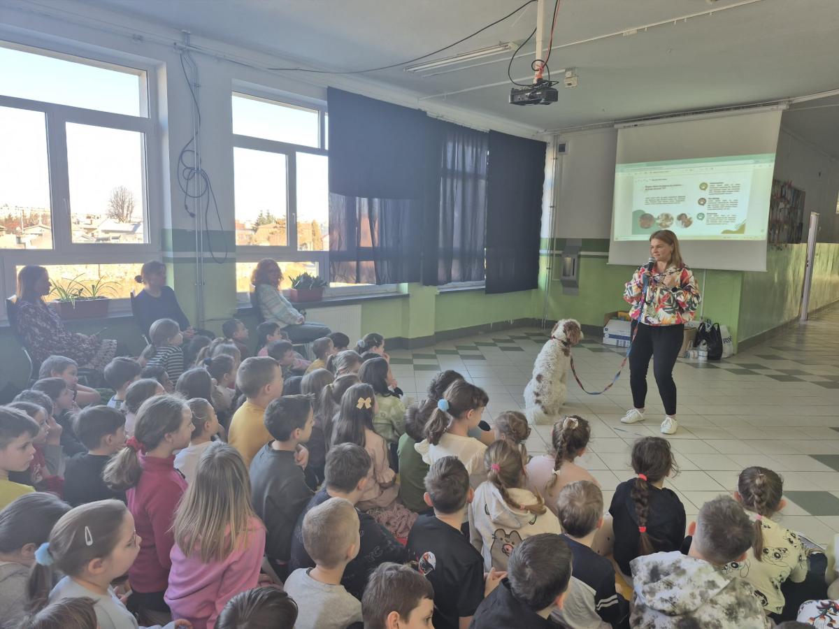 Prelekcja była bardzo ciekawa i poruszała ważne tematy dotyczące zwierząt – odpowiedzialnej opieki, właściwego traktowania oraz potrzeb bezdomnych psów i kotów. Uczniowie dowiedzieli się, jak bezpiecznie zachowywać się w kontakcie z czworonogami oraz w jaki sposób mogą pomagać zwierzętom na co dzień.