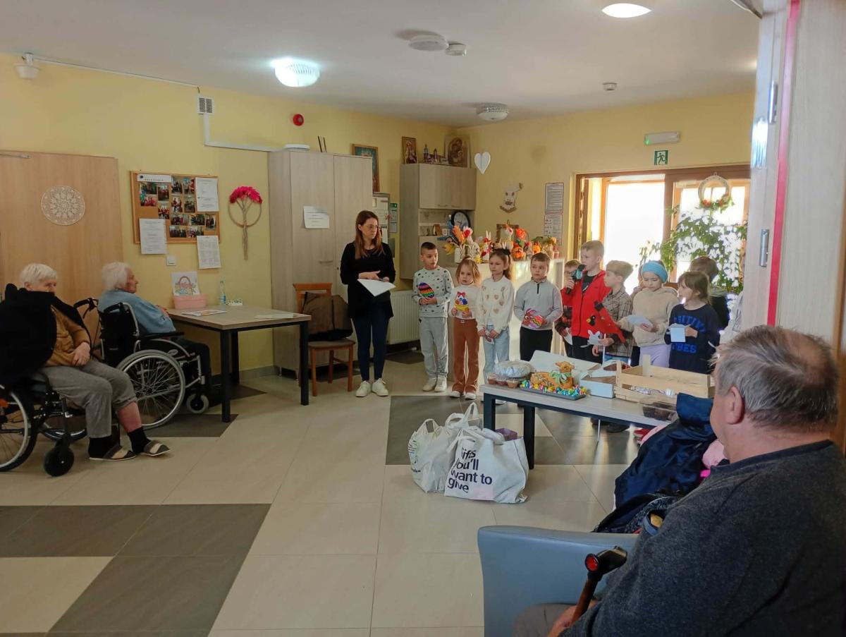 W przedświątecznym czasie grupa wolontariacka „Małe Serduszka” odwiedziła seniorów przebywających w Domu Pomocy Społecznej w Wapiennym, niosąc ze sobą radość, serdeczność i odrobinę świątecznej magii. Dzieci przygotowały wyjątkowy występ z okazji Świąt Wielkanocnych, który głęboko poruszył zgromadzonych mieszkańców i wywołał wiele uśmiechów oraz wzruszeń.