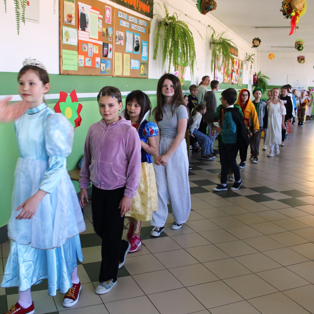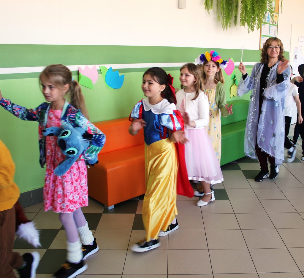 Światowy Dzień Książki w naszej szkole zamienił zwykły szkolny korytarz w krainę wyobraźni. Tego dnia próżno było szukać zwykłych uczniów, zamiast nich pojawiły się postacie prosto z kart książek. Uczniowie klas 1-3 wraz z wychowawcami przynieśli swoje ulubione książki, które stały się pretekstem do rozmów, wspomnień i odkrywania nowych historii. W zabawę włączyli się wszyscy. Zarówno dzieci, jak i panie wychowawczynie przyszły przebrane za ulubione postacie literackie. W szkolnych murach można było spotkać m.in. Małego Księcia, Esmeraldę, Anię z Zielonego Wzgórza, Królową Śniegu, Szewczyka Dratewkę, Dziewczynkę z zapałkami i wiele innych niezwykłych bohaterów. Jednym z najpiękniejszych momentów była parada postaci, kolorowa, radosna i pełna kreatywności. Nie zabrakło również wspólnego czytania fragmentów bajek, które na chwilę zatrzymało czas i pozwoliło wszystkim zanurzyć się w świecie fantazji. To był dzień, który pokazał, że wyobraźnia dzieci nie zna granic, a książki mają niezwykłą moc łączenia ludzi i tworzenia pięknych wspomnień.