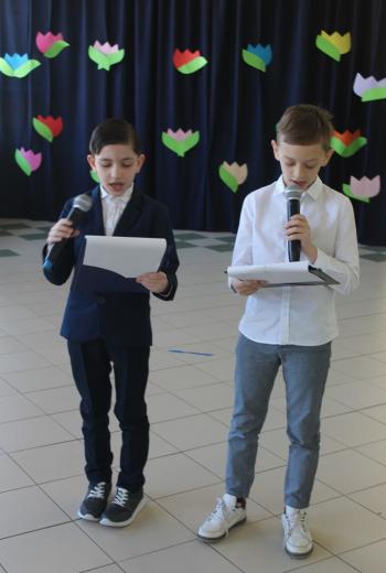 Galerie zdjęć Super Klasa 2026 – emocje, tradycja i zwycięstwo klasy 8a 27.03.2026 Powitanie Wiosny 25.03.2026 Konkurs na przebranie i logo klasy 24.03.2026 Gminny Konkurs ekologiczny 23.03.2026 Koncert z okazji Dnia Kobiet 23.03.2026 Udział dyrektora w konferencji „Moc relacji w edukacji” – praktyka, która działa 19.03.2026 III Powiatowy Konkurs Ekologiczno – Chemiczny „Człowiek, chemia i środowisko” 18.03.2026 Wyjazd do Krakowa 16.03.2026 Dzień Kobiet w klasie 1c 10.03.2026 Spotkanie online uczniów z Gorlic i Kałusza 5.03.2026 Spotkanie w ramach trasy „Kierunek – Kompas Jutra” z udziałem przedstawicieli MZS nr 5 4.03.2026 Lekcja dla przedszkolaków oraz uczniów klas 1-2 szkoły podstawowej 2.03.2026 Spotkanie uczniów klas 1–3 z wolontariuszką Fundacji „PSYstań” 2.03.2026 Udział uczniów klasy 7a w Europejskim Forum Dziedzictwa I Wojny Światowej w Gorlicach 27.02.2026 Certyfikat „Kreatywne Przedszkole” 18.02.2026 Zimowisko 2026 17.02.2026 Dzień Babci i Dziadka 10.02.2026 Kulig w Izbach 2.02.2026 Zima w świetlicy 30.01.2026 #LaboratoriaPrzyszłości - Matematyka w praktyce 27.01.2026