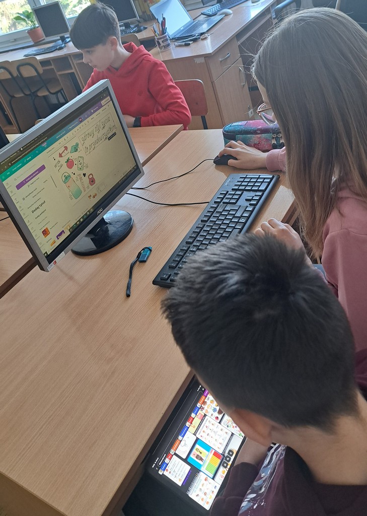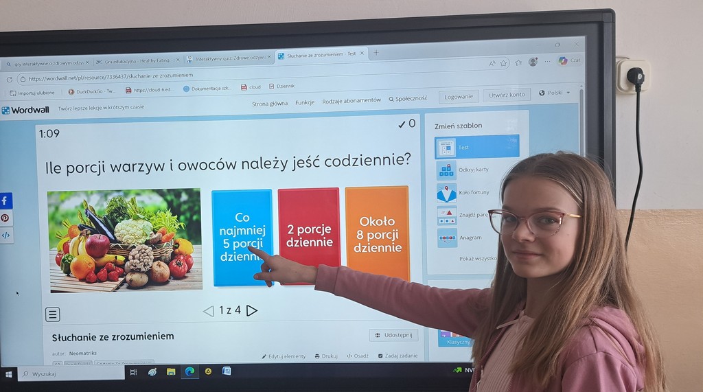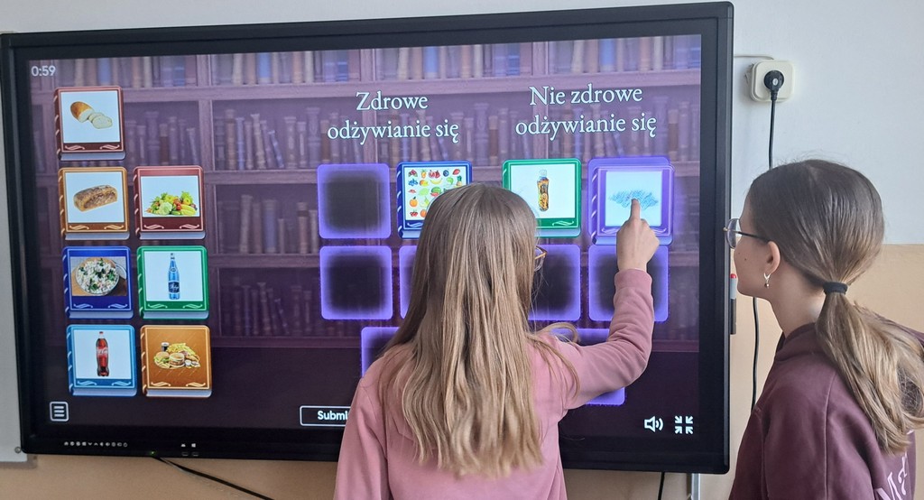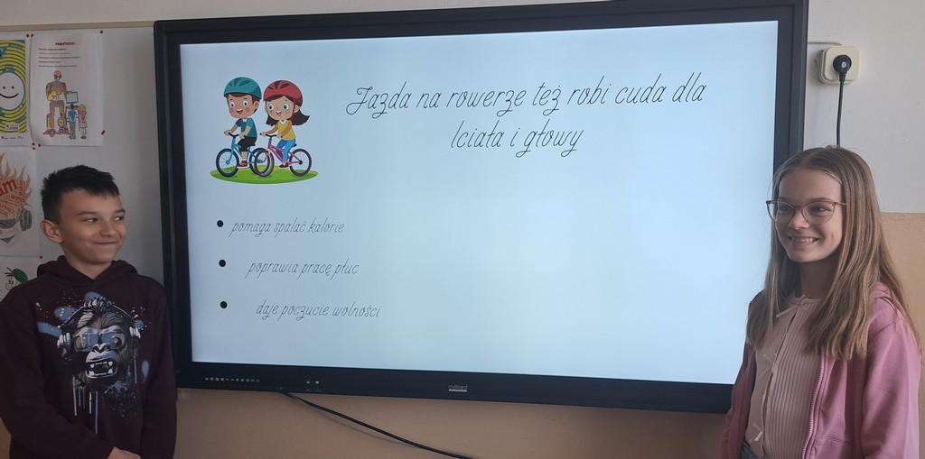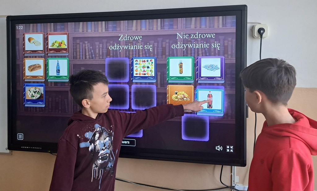 Ala zrobiła prezentację „Witaminy” w Programie PowerPoint. Antoś i Zosia wykorzystali w swojej pracy Canve i przygotowali prezentację „Zdrowy styl życia”. Natomiast Filip stworzył grę na Platformie Wordwall dotyczącą prawidłowego odżywiania się. Na koniec wszyscy rozwiązywali quizy i zagadki interaktywne na temat zdrowego odżywiania i aktywnego trybu życia. Poprzez prezentacje, zabawy dydaktyczne i rozmowy, uczniowie utrwalali istotne informacje na temat tego, jak dbać o zdrowie i utrzymywać dobre samopoczucie.